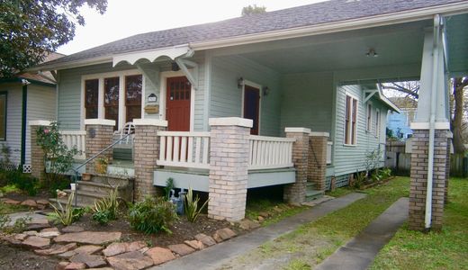 Circa 1926, original hardwood floors, 3 over 1 windows with a large living room that flows in the dining room and kitchen designed for comfortable living, in this 2 bedroom 1 bath home. The strain woodwork is a must see. Porte Cocheres adds to the charm and provides covered off street parking. Large shaded back yard with storage/garage adds extra parking with a few adjustments. Perfect 2nd home, started home or income producing rental. No flooding into home from Ike or Harvey.
